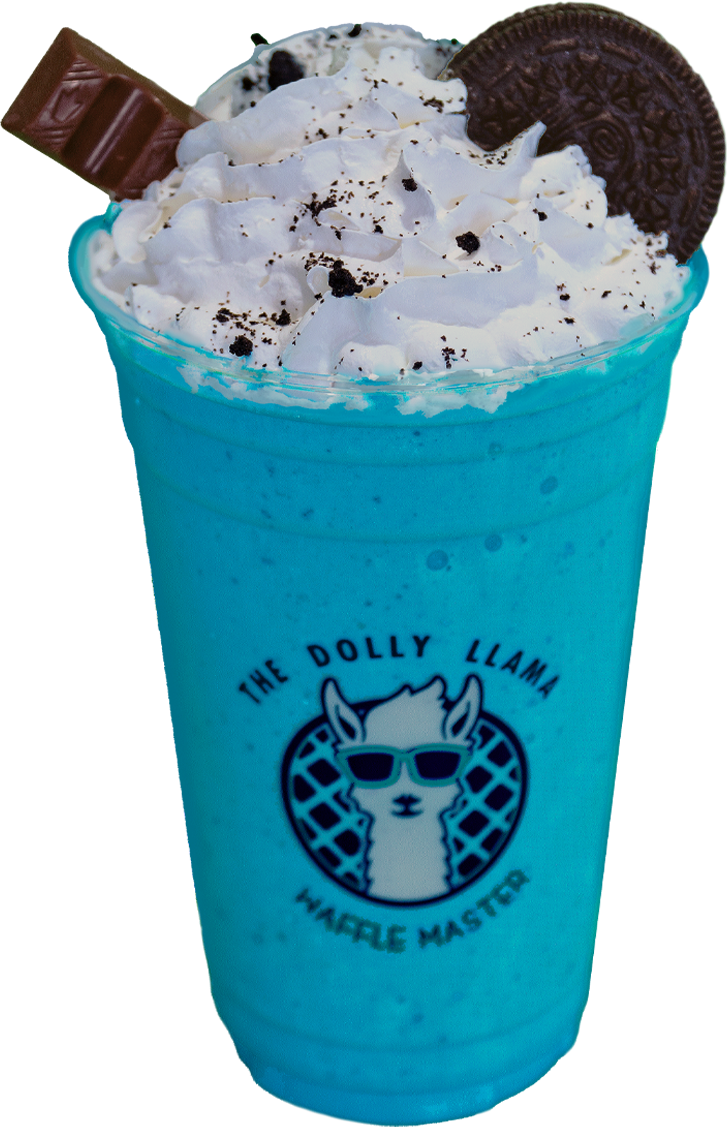 Ultimate Cookie Monster ice cream, whole milk, oreo crumbs, kinder bars, chocolate sauce and whipped cream.