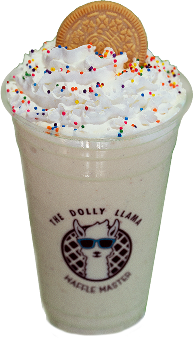 One of our top shakes paired with a Signature OG Liege Waffle topped with powdered sugar.