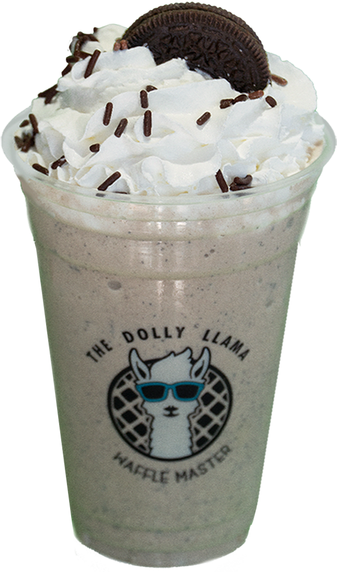 Vanilla ice cream, whole milk, oreo crumbs, chocolate sauce, coco sprinkles, oreo cookie and whipped cream.