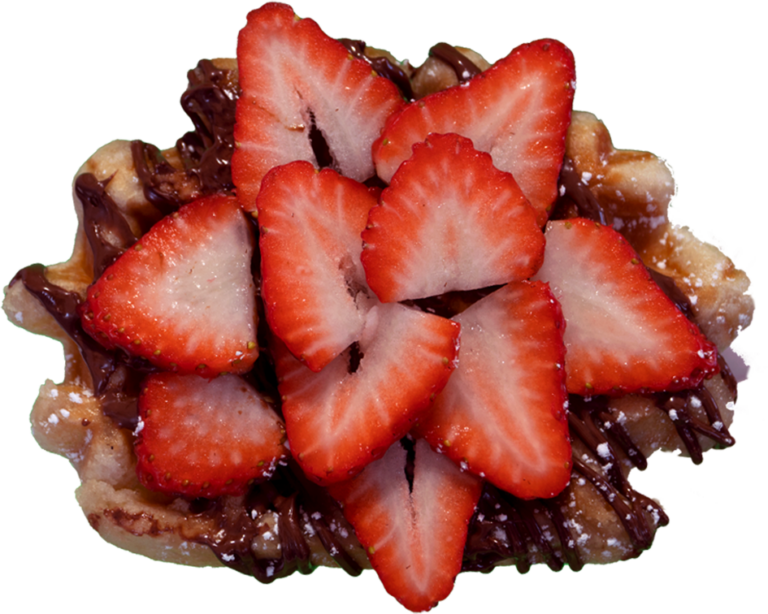 Signature OG Liege Waffle topped with nutella sauce and fresh strawberries.