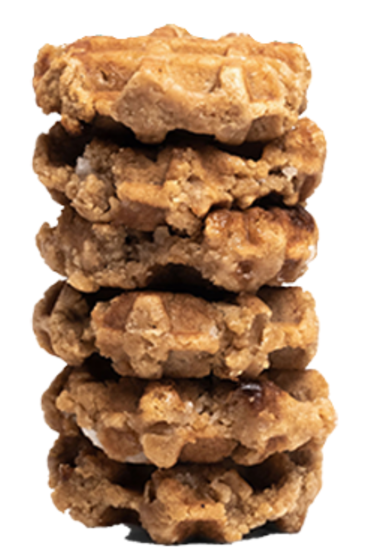 One large scoop of our Premium Ice Cream sandwiched between two Mini OG Liege Waffles.